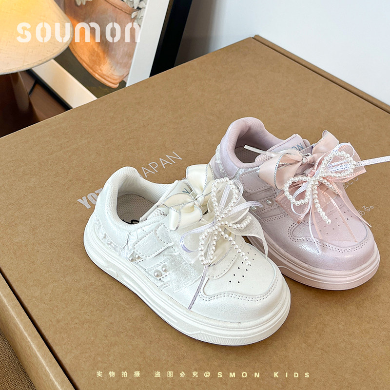 书萌儿童运动鞋2026春秋新款女童珍珠蝴蝶结小白鞋子百搭休闲板鞋
