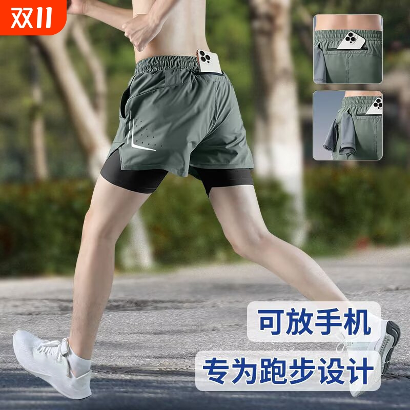 跑步短裤男专业马拉松田径三分裤带内衬双层裤子运动健身可放手机