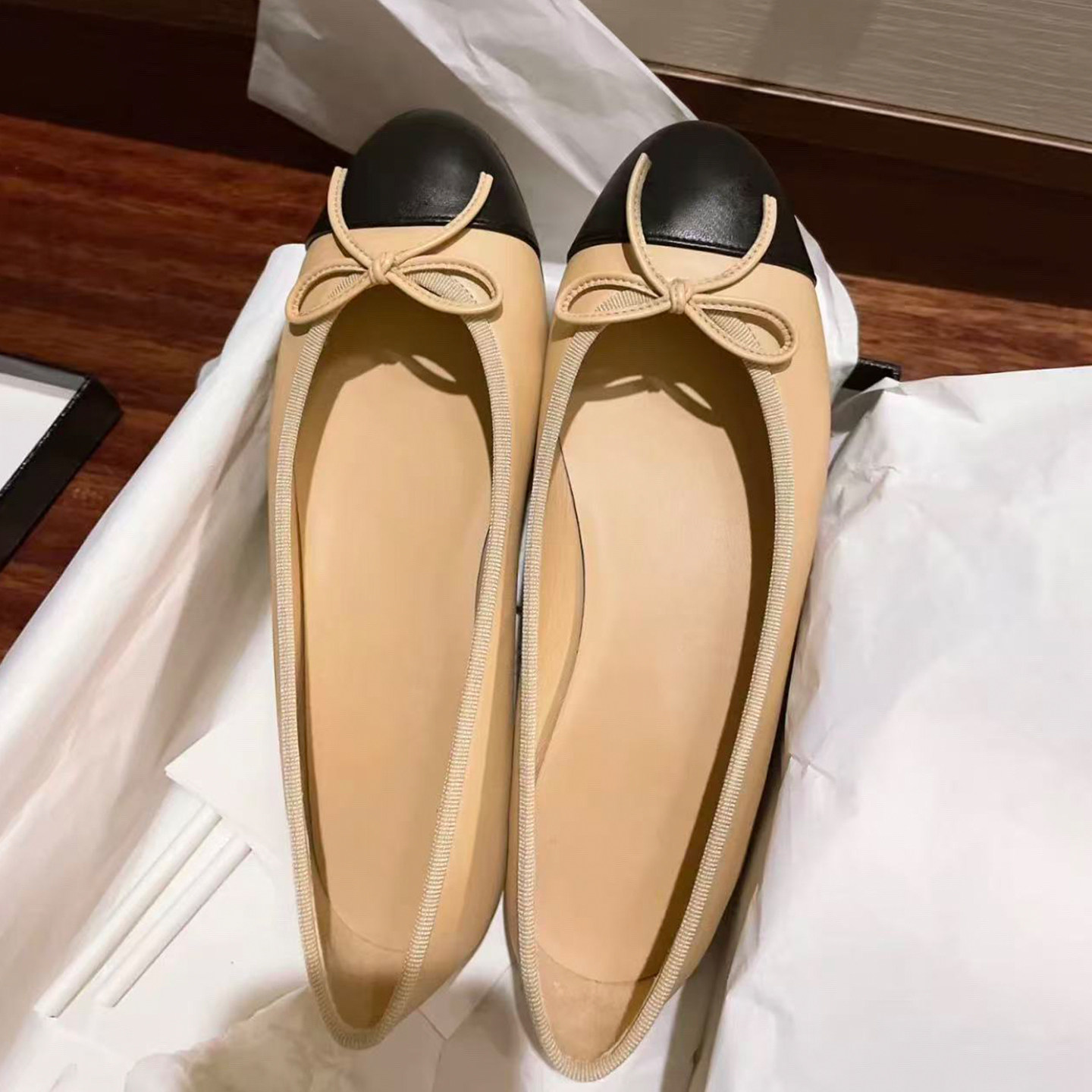 羊皮版~真皮蝴蝶结圆头浅口单鞋女小香经典拼色平底玛丽珍鞋瓢鞋