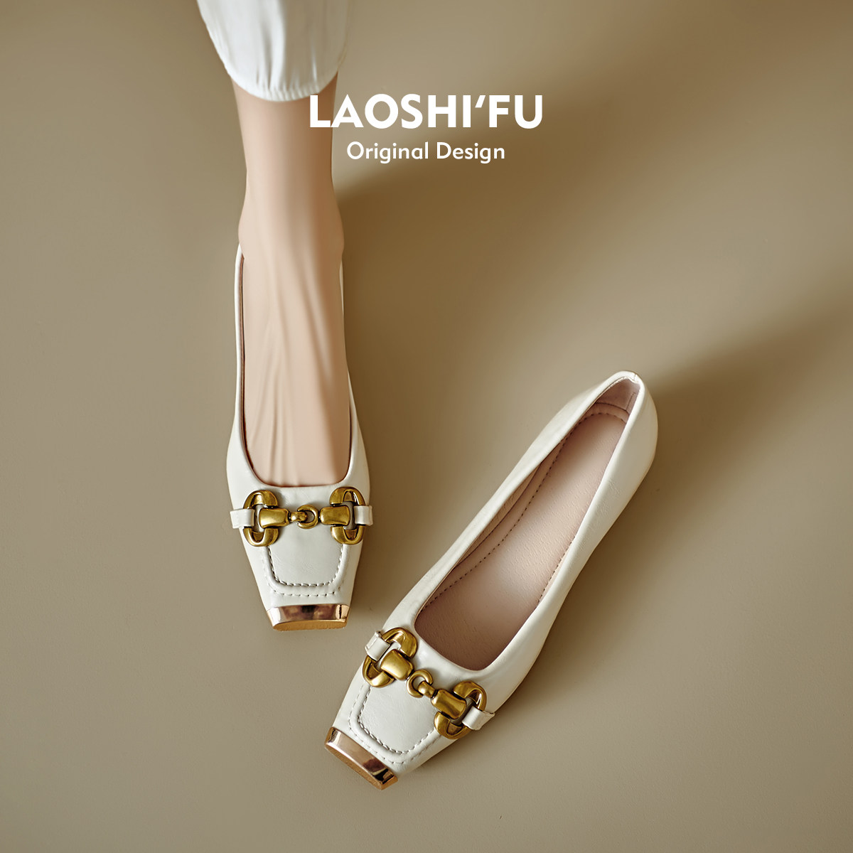 羊皮版~法式小香风方头平底单鞋女2025新款浅口温柔鞋仙女风瓢鞋