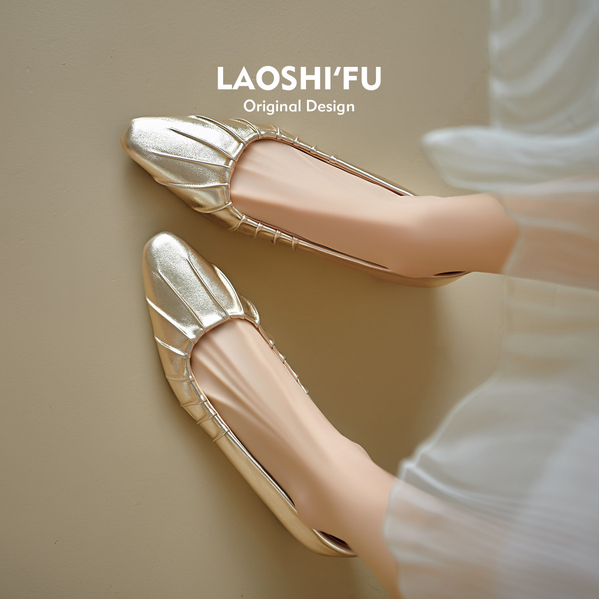 reemoor睿慕软底蛋卷鞋芭蕾银色单鞋女法式仙女风瓢鞋舒适百搭