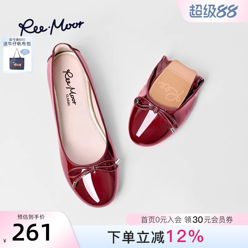 REEMOOR睿慕蛋卷鞋女红色浅口平底鞋软底船鞋芭蕾舞单鞋瓢鞋女鞋