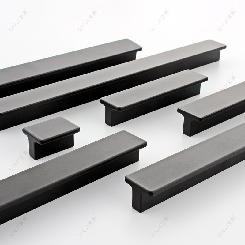 现代柜门拉手简约衣柜门橱柜抽屉加长黑色把手北欧家具铝合金拉手