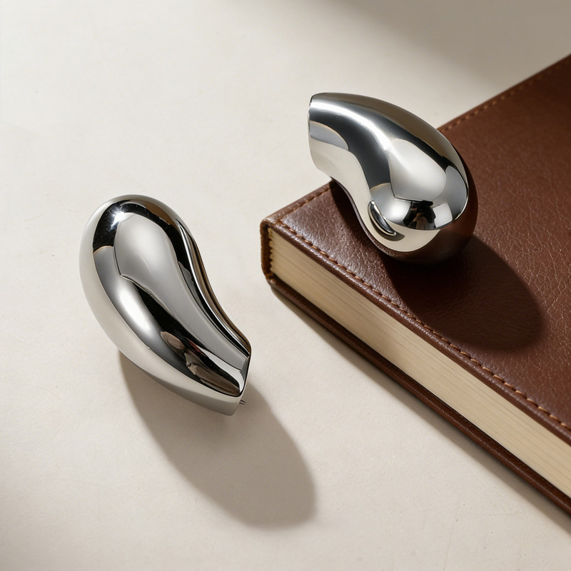 法式轻奢亮银色水滴拉手现代简约衣柜门抽屉柜子新中式单孔小把手