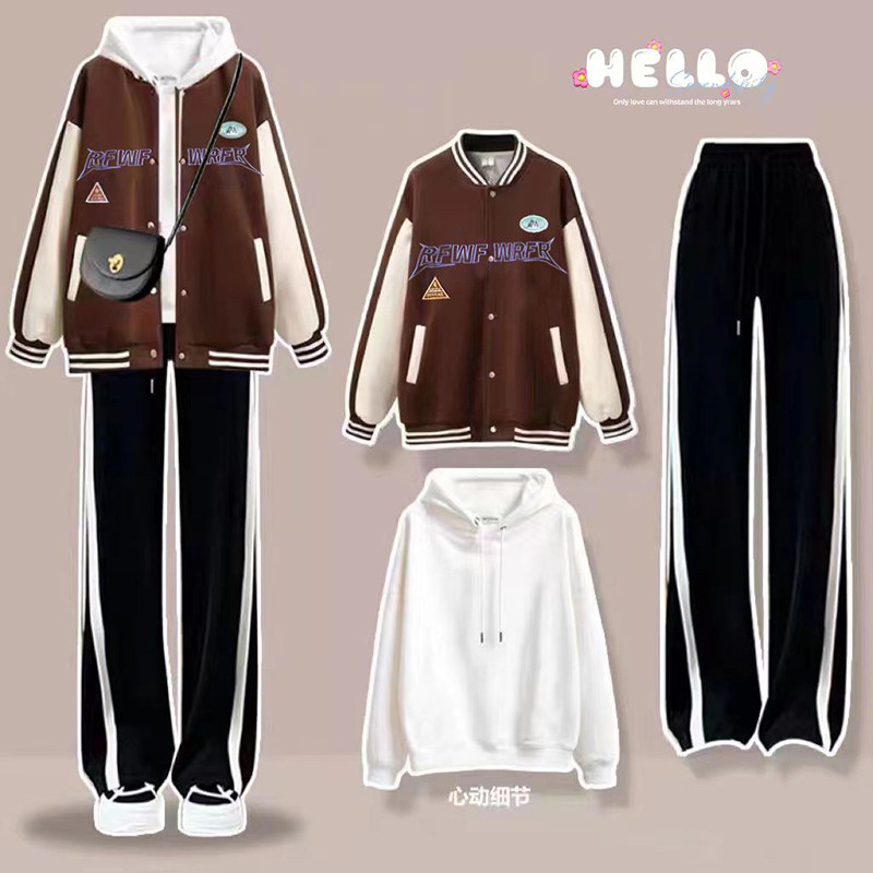 春秋套装棒球服女外套宽松长袖卫衣上衣休闲牛仔裤子学院风三件套