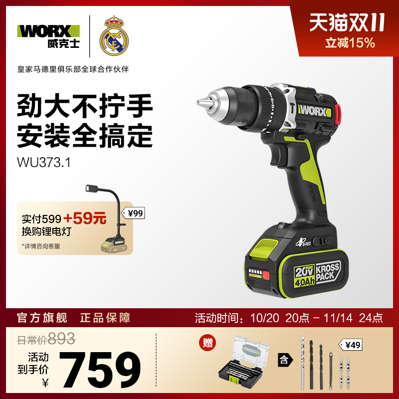 威克士95牛米大扭矩锂电冲击钻WU373充电手电钻电转电动工具WU193