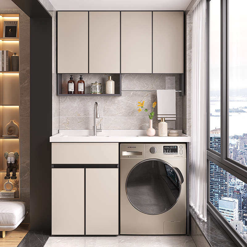 太空铝阳台洗衣柜组合洗衣池搓衣板洗衣槽洗衣机一体柜洗衣台定制