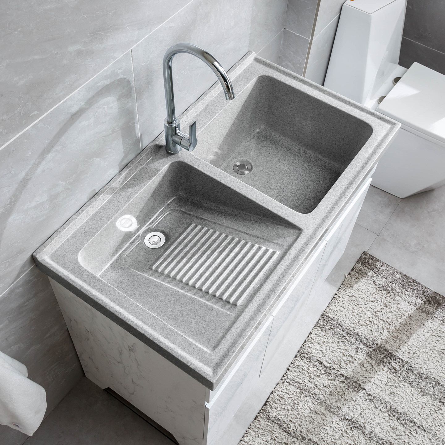 双下水污水分离石英石洗衣台阳台人造石材洗衣柜组合洗衣池带搓板