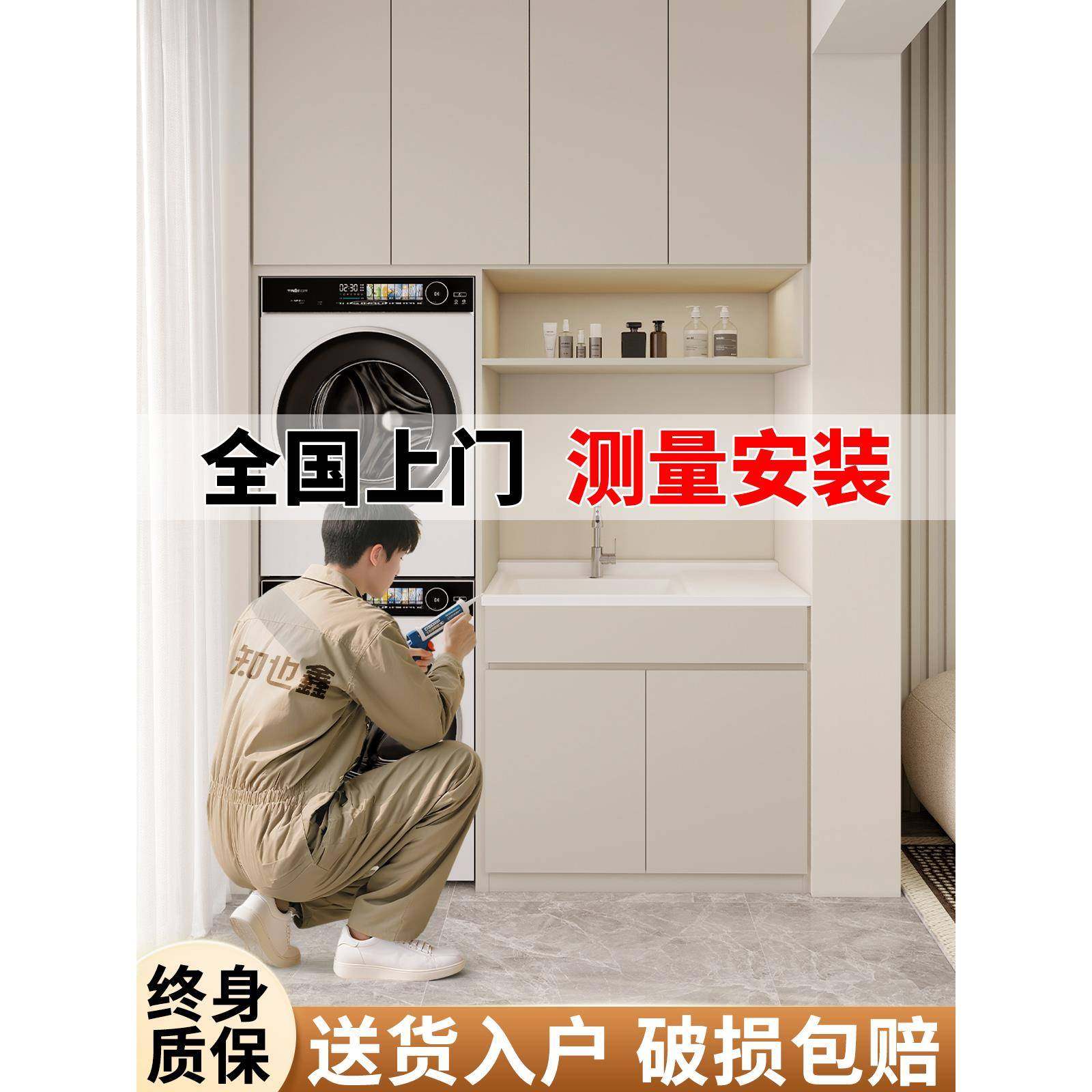 定制洗衣机一体柜太空铝石英石台盆柜阳台滚筒洗衣柜组合带搓衣板