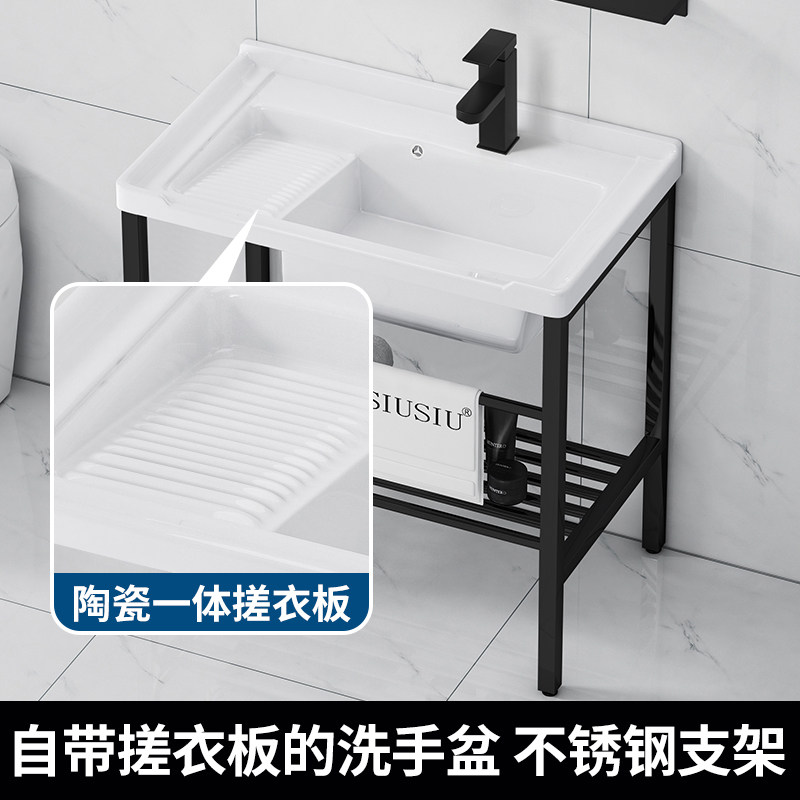 陶瓷洗衣池不锈钢支架搓衣板一体洗脸盆洗手盆洗衣槽洗衣台洗衣盆
