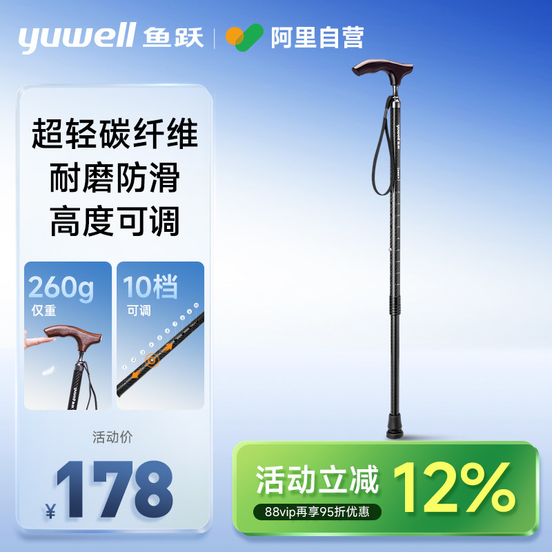 碳纤维拐杖老人防滑四脚拐棍轻便碳素手杖老年人助步器登山杖带灯