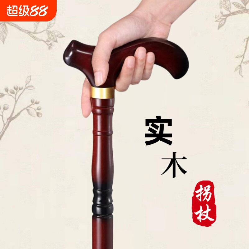 拐杖老人防滑实木四脚鸡翅木手杖老年人拐棍轻便龙头红木扶手登山