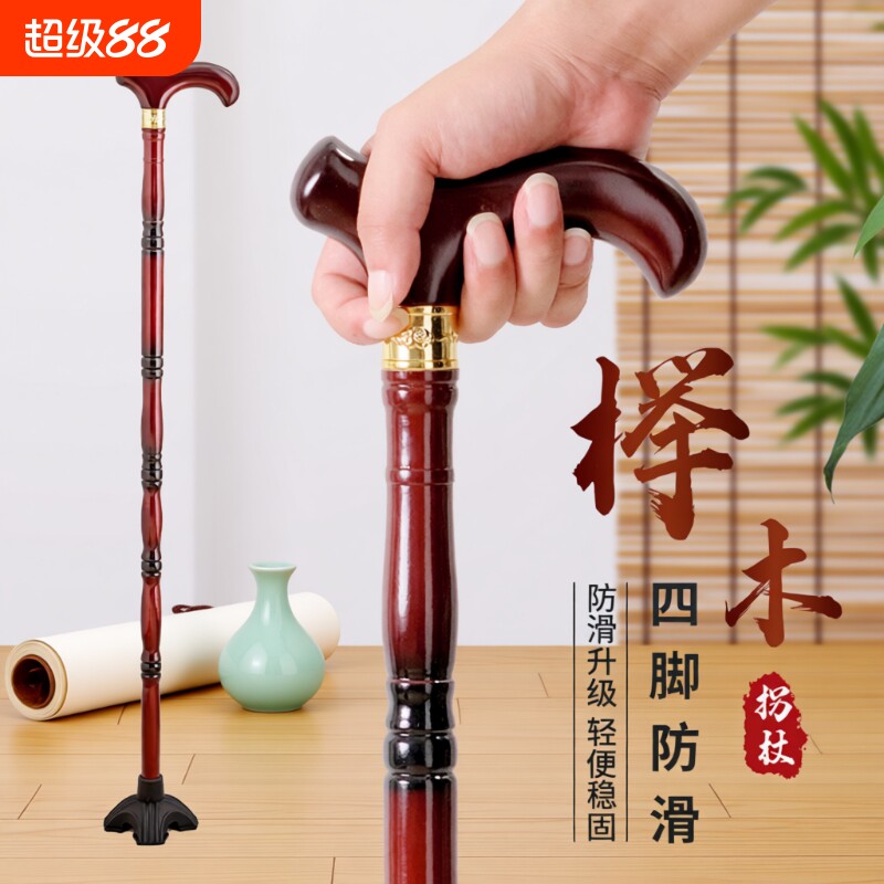 拐杖老人防滑轻便实木老年人防摔倒拐棍四脚专用助力手杖木头女士