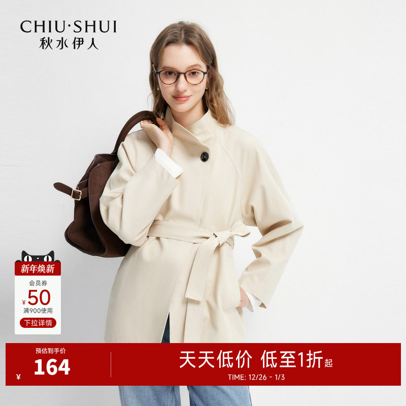 秋水伊人优雅气质通勤风衣2025年秋季新款简约H型立领系带外套女