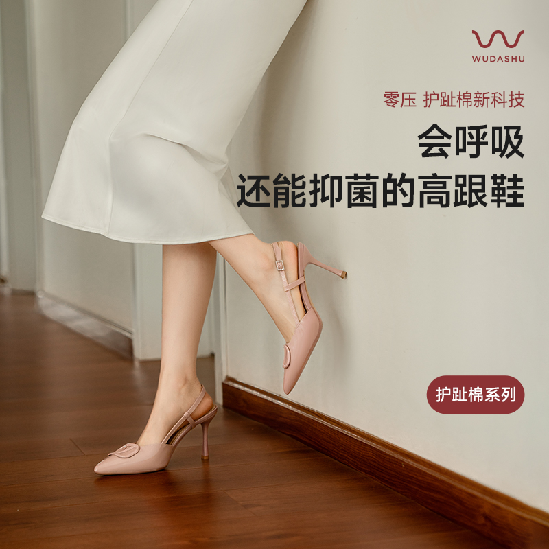 吴大叔真皮法式气质时尚百搭尖头凉鞋夏季新款裸色后空细跟单鞋女
