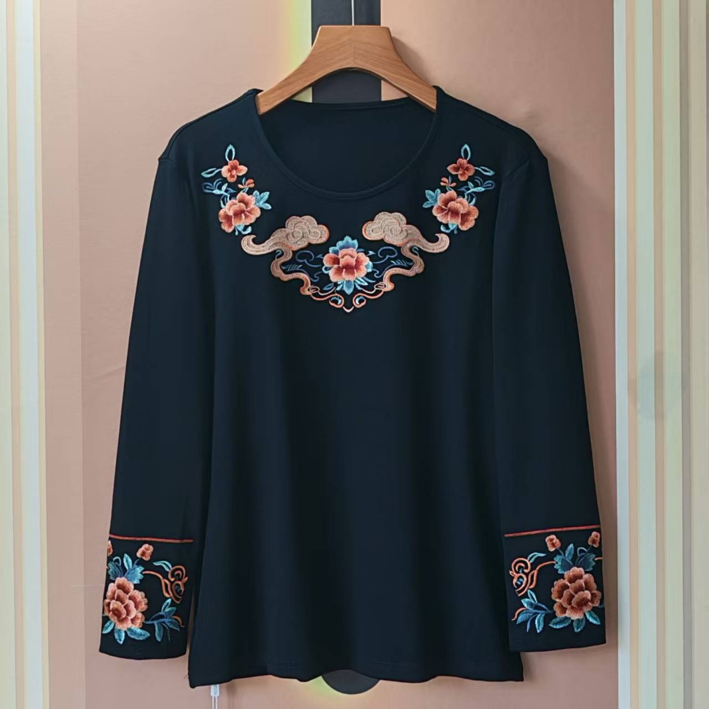 民族风绣花长袖t恤[第5名]