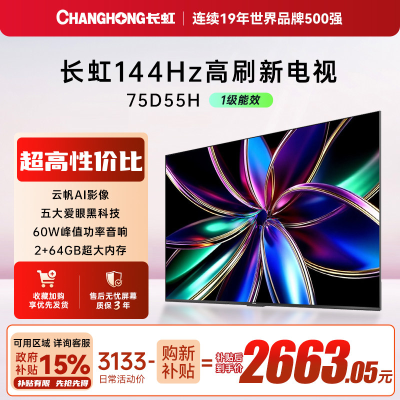 【政府补贴】长虹75D55H 75英寸客厅智能电视网络LED液晶电视机