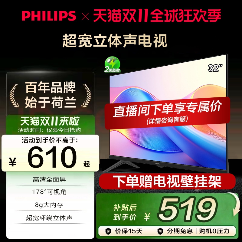 飞利浦 32PHF6309S 32英寸全面屏智能网络LED液晶电视以旧换新
