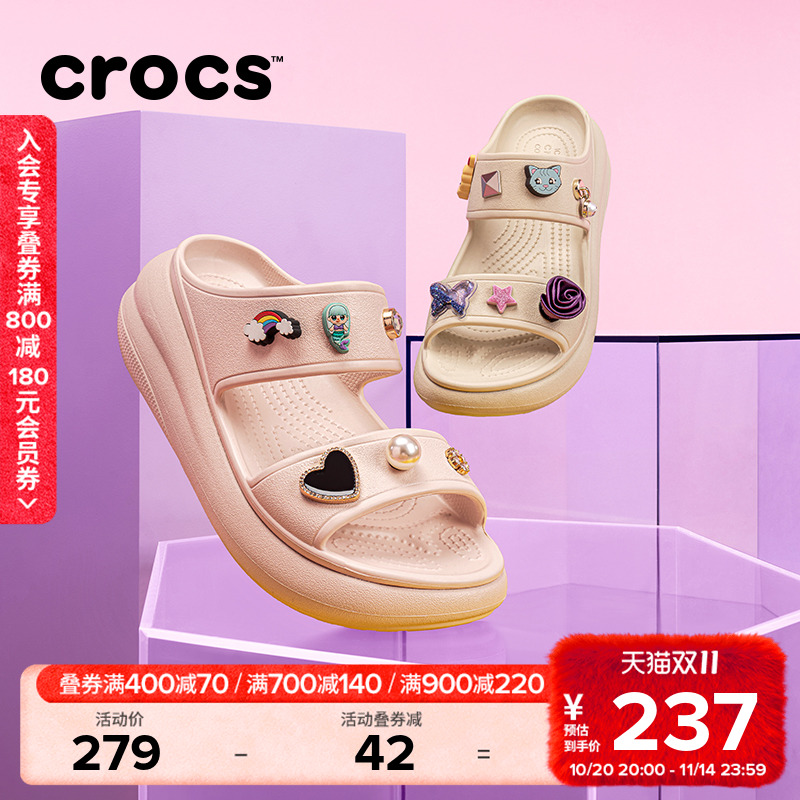 Crocs卡骆驰泡芙凉鞋洞洞鞋坡跟鞋户外厚底鞋高跟女鞋|207670