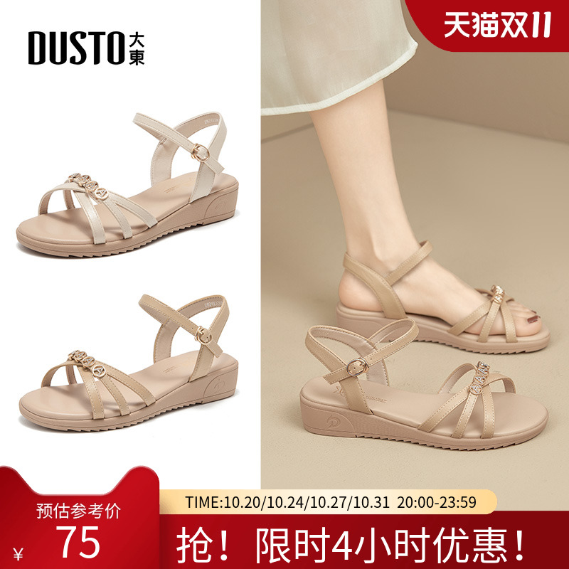 大东坡跟凉鞋女款2025新款夏季配裙子女鞋露趾水钻厚底增高罗马鞋