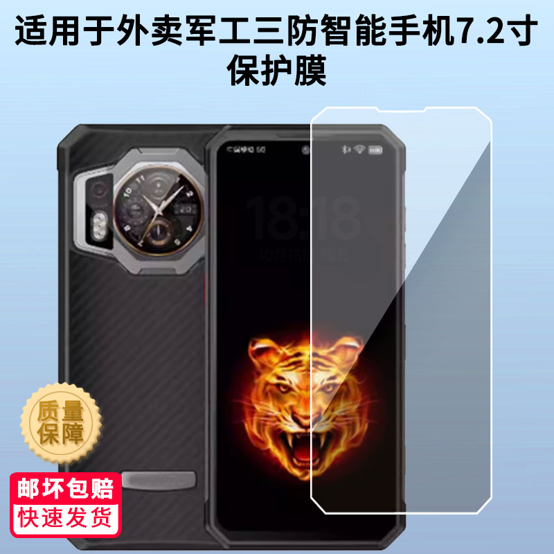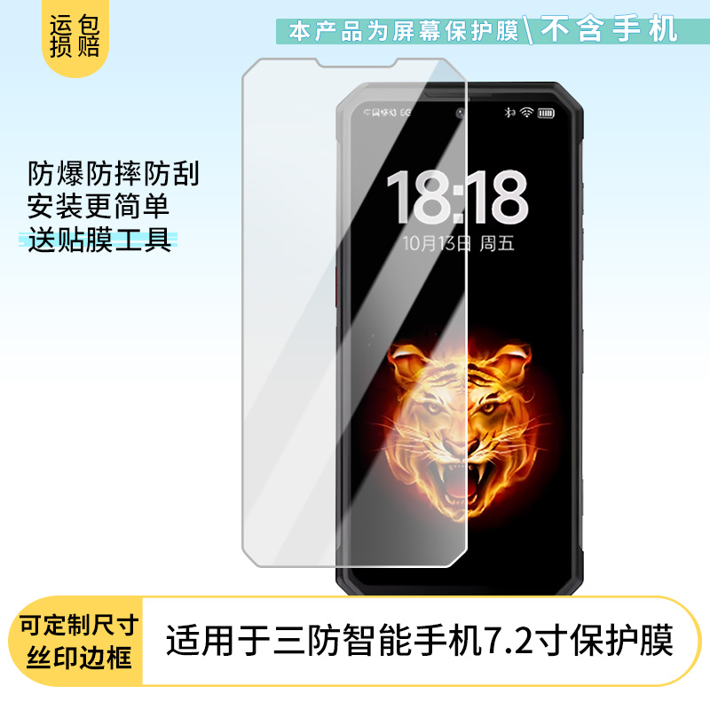 适用于外卖军工三防智能手机7.2英寸 屏幕高清防刮防指纹防爆膜纤维钢化膜防摔防蓝光膜