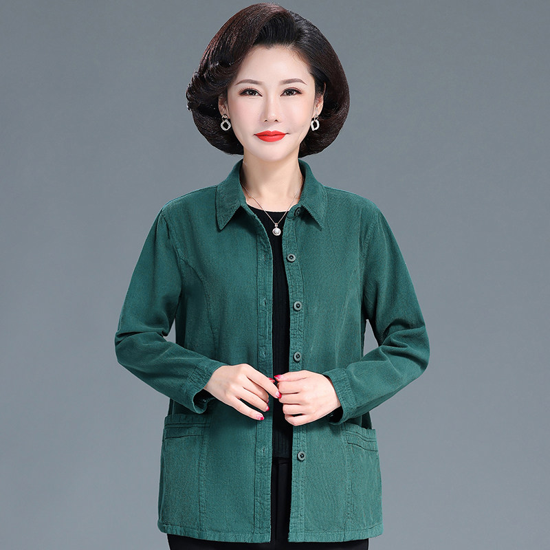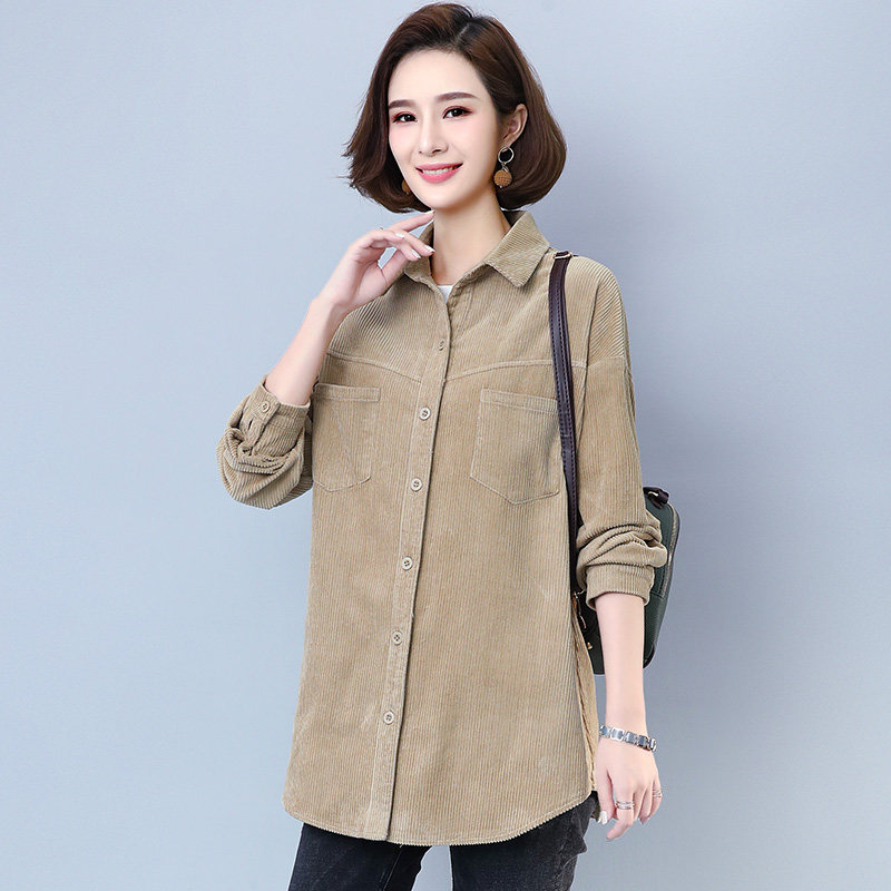 灯芯绒衬衫女中长款宽松纯棉2025春秋新款中老年妈妈休闲衬衣外套