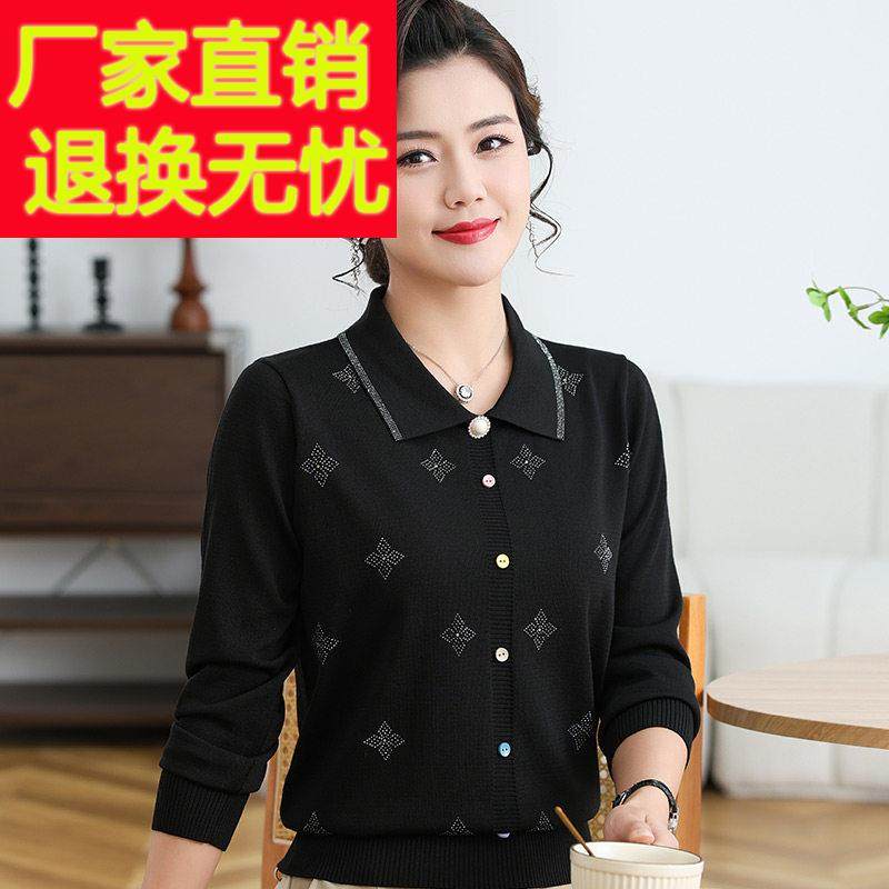 洋派妈妈春装POLO领针织衫女中老年春秋长袖衬衫显瘦遮肚子羊毛衫