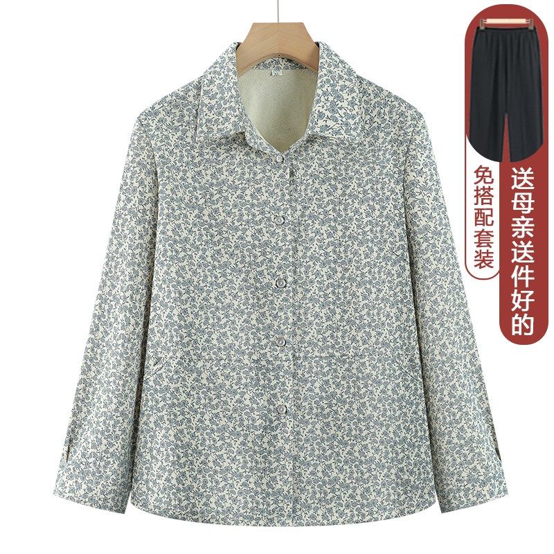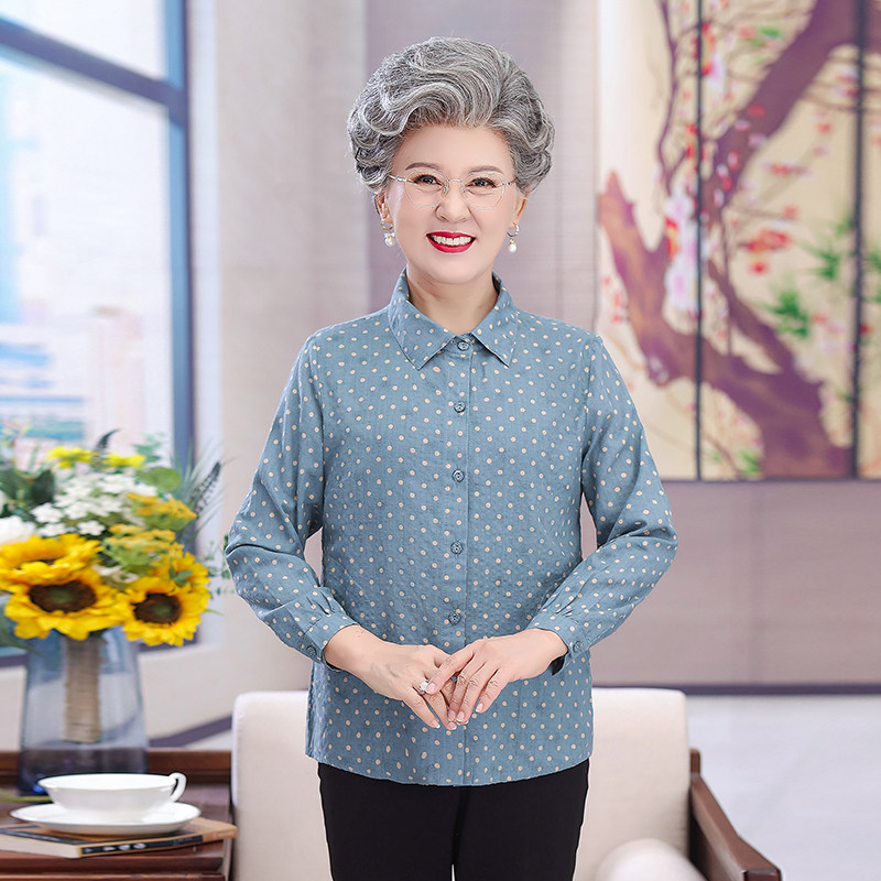 奶奶装秋装新款女中老年人衬衫妈妈长袖衬衣老太太春秋薄外套宽松