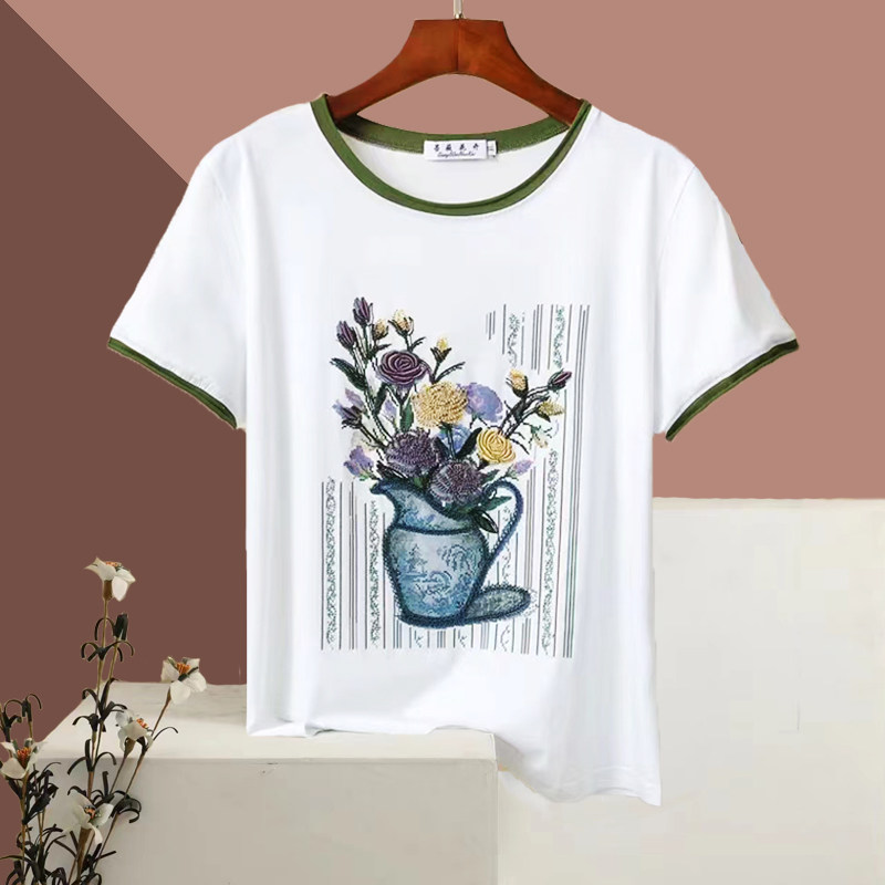 品牌短袖T恤女中老年妈妈刺绣印花上衣高档复古名族风纯棉体恤衫