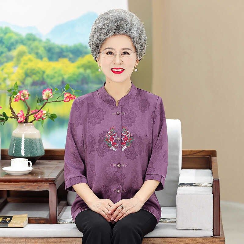 奶奶夏装衬衫女中老年人七分袖开衫妈妈装夏季绣花70岁80老人衣服