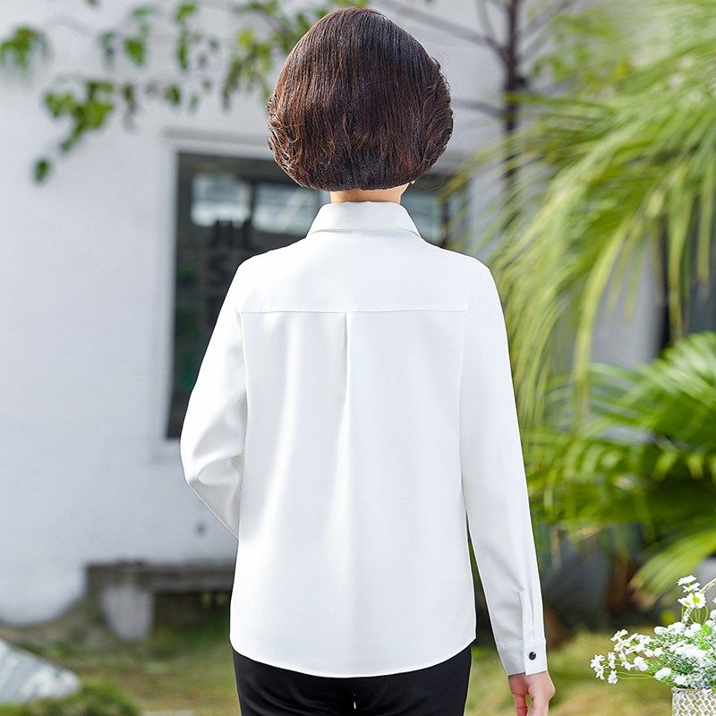 年轻妈妈白色长袖衬衫女中老年春秋款女装2024新款中年白衬衫上衣