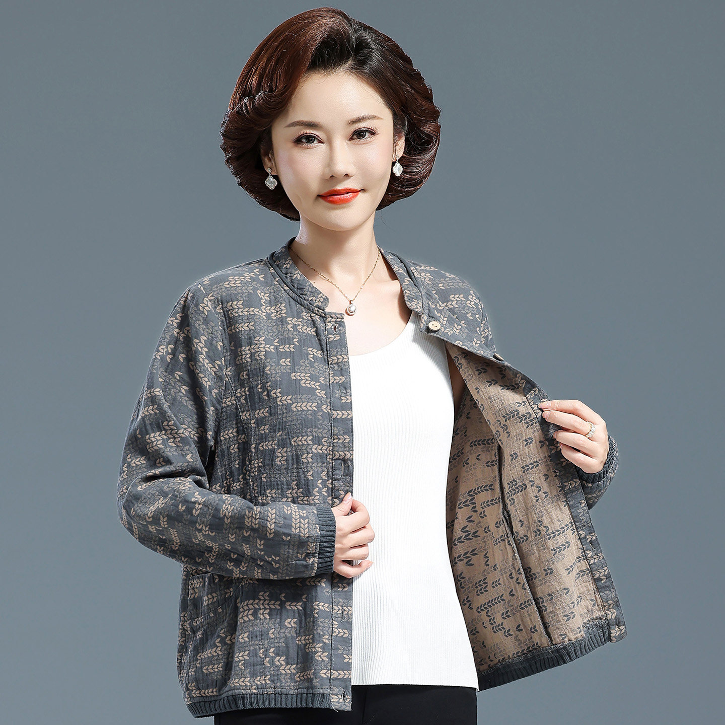 妈妈装春秋薄外套女中老年休闲纯棉衬衫奶奶上衣宽松长袖老人衣服