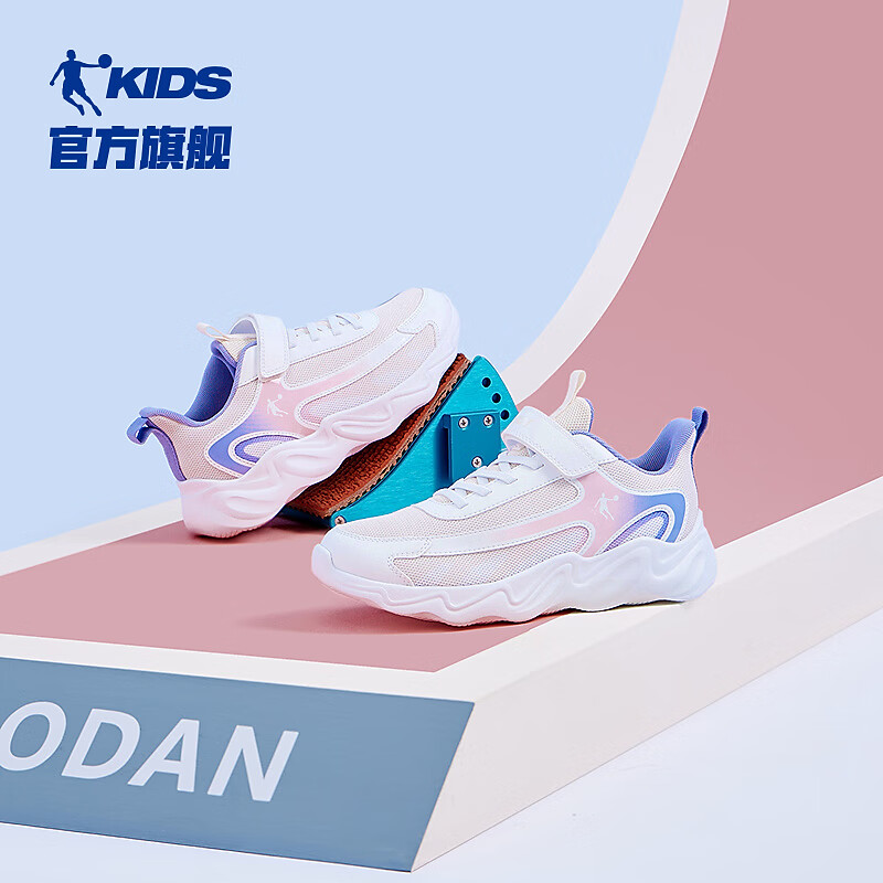 乔丹女童鞋魔术贴运动鞋2025夏季网面儿童鞋女童跑步鞋轻便学生鞋