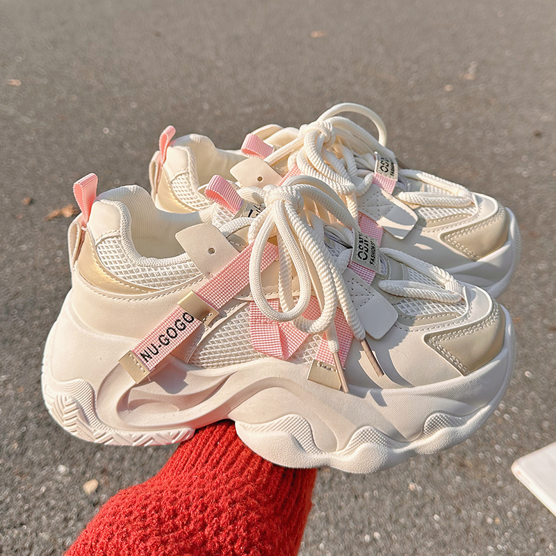 三幅圆头华夫阿甘鞋女2025新款夏季港风学生厚底运动跑步老爹鞋