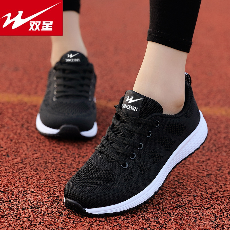 双星夏季运动鞋女鞋跑步鞋网面透气轻便旅游鞋学生女软底休闲鞋女