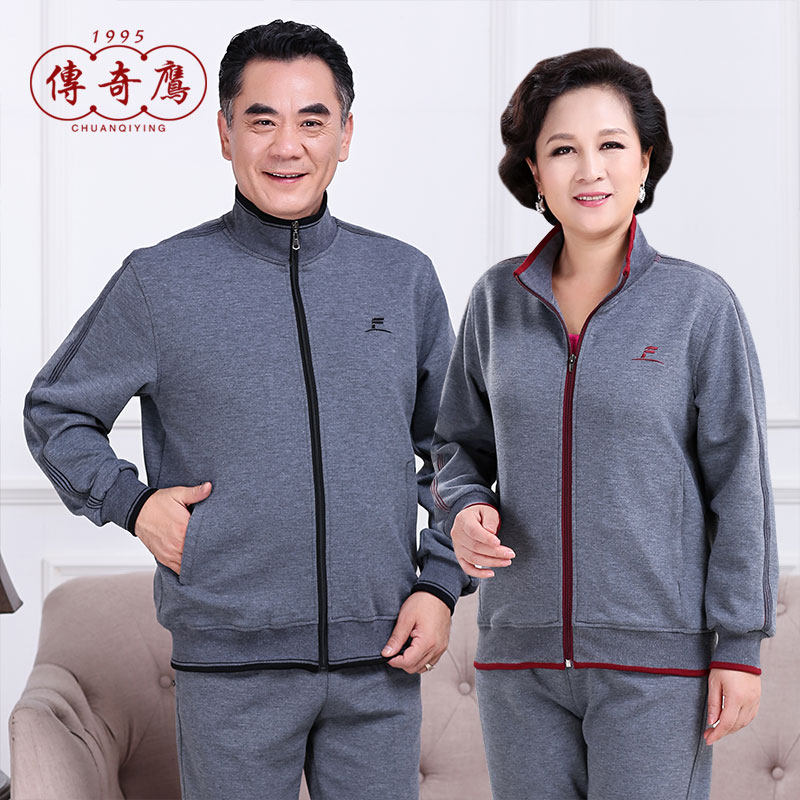 运动服套装男女中老年休闲春秋情侣装两件套爸爸装妈妈装中老年人