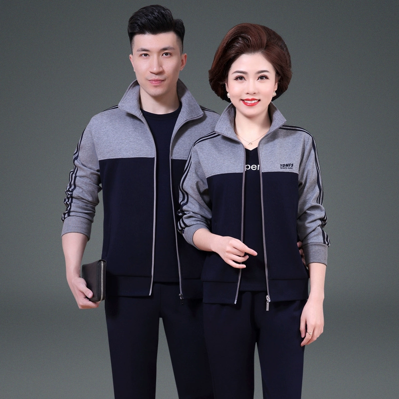 中老年情侣装外套秋装休闲运动服男女中年人爸爸妈妈减龄三件套装