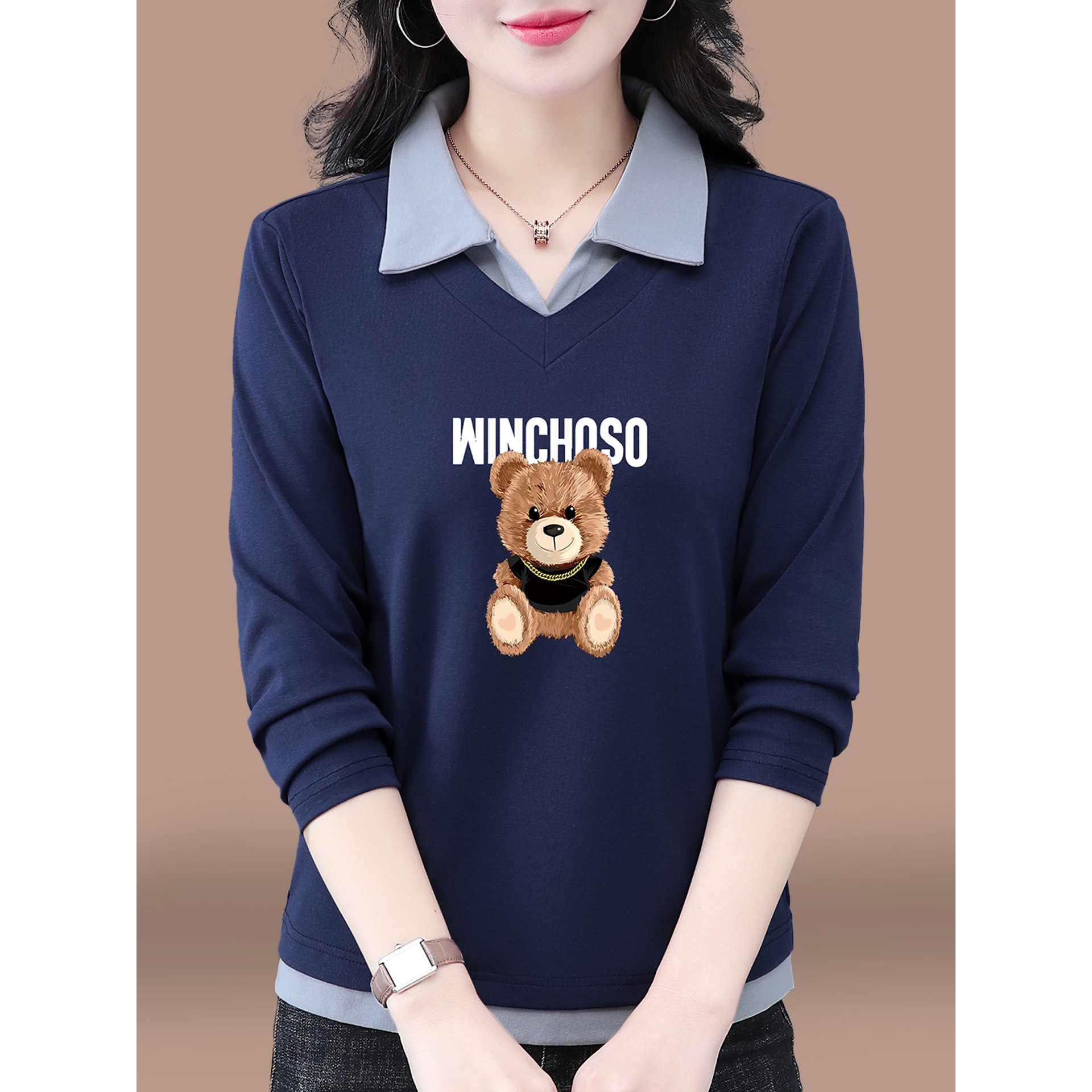 娃娃领女士卫衣女款2025新款春秋时尚洋气中年妈妈翻领假两件上衣