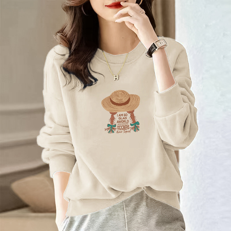 无帽卫衣女款春秋2025新款中年妈妈显瘦正肩纯棉打底衫女内搭上衣
