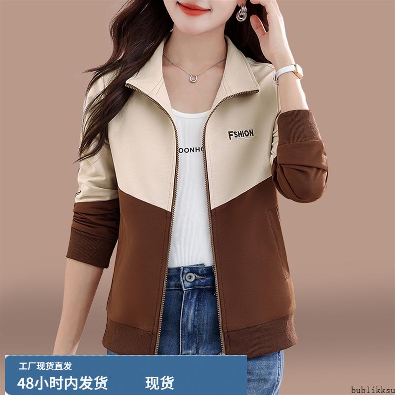 早秋外套女款2025新款春秋薄款中年妈妈拼色立领开衫卫衣运动上衣