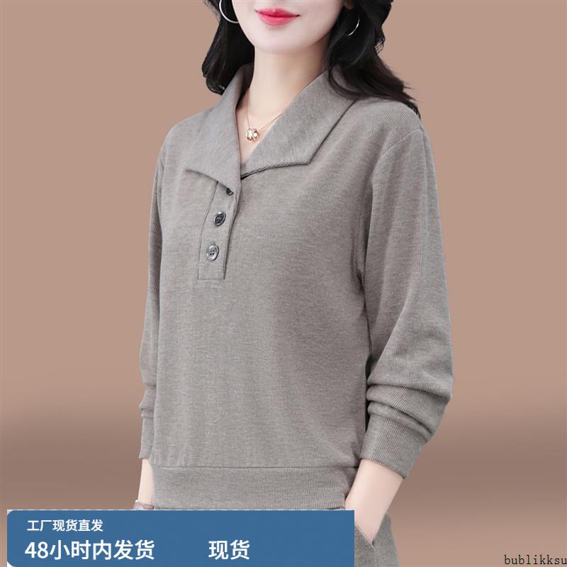 翻领卫衣女款春秋2025新款中年妈妈时尚洋气休闲宽松显瘦套头上衣