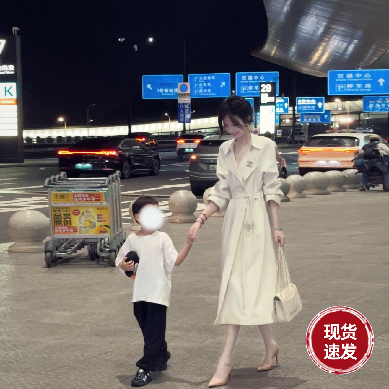 大牌风明星同款25年新款中长风衣外套女双排扣翻领系腰带显瘦大衣