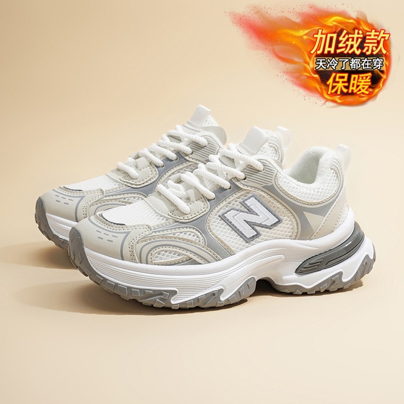 NEW BOLUNE/新百伦女鞋2025冬季新款加绒保暖棉鞋厚底增高老爹鞋