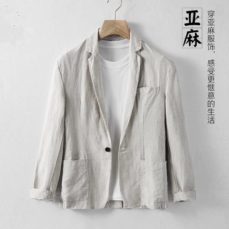 春夏季新款纯亚麻小西装男棉麻料商务休闲单西服薄款透气外套男潮