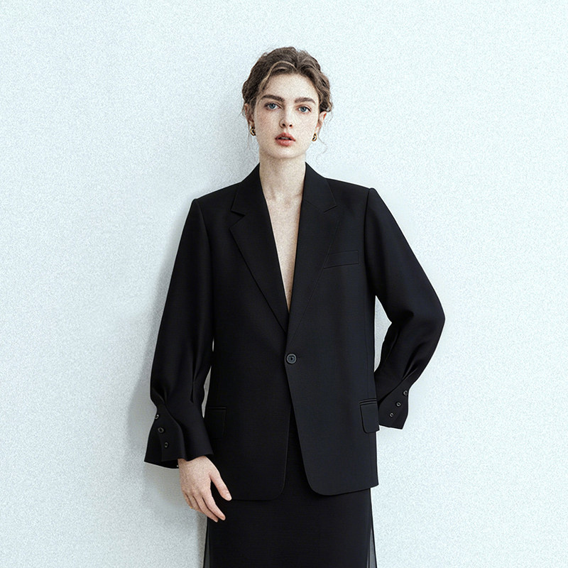 初溯2026春夏新款欧货轻熟简约风一粒扣七分袖天丝亚麻小西装外套