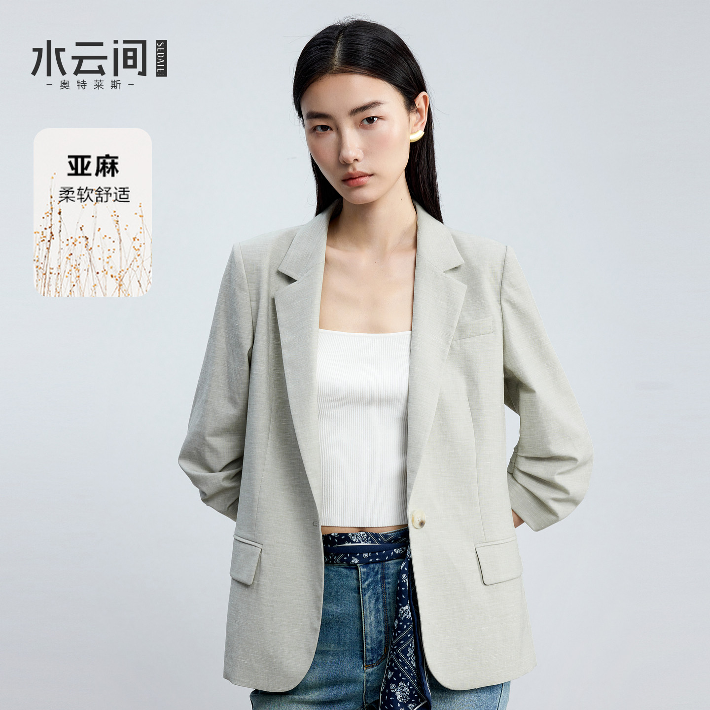 播商场同款简约浅色亚麻小西装女25夏新款休闲宽松外套BDS2XD2521