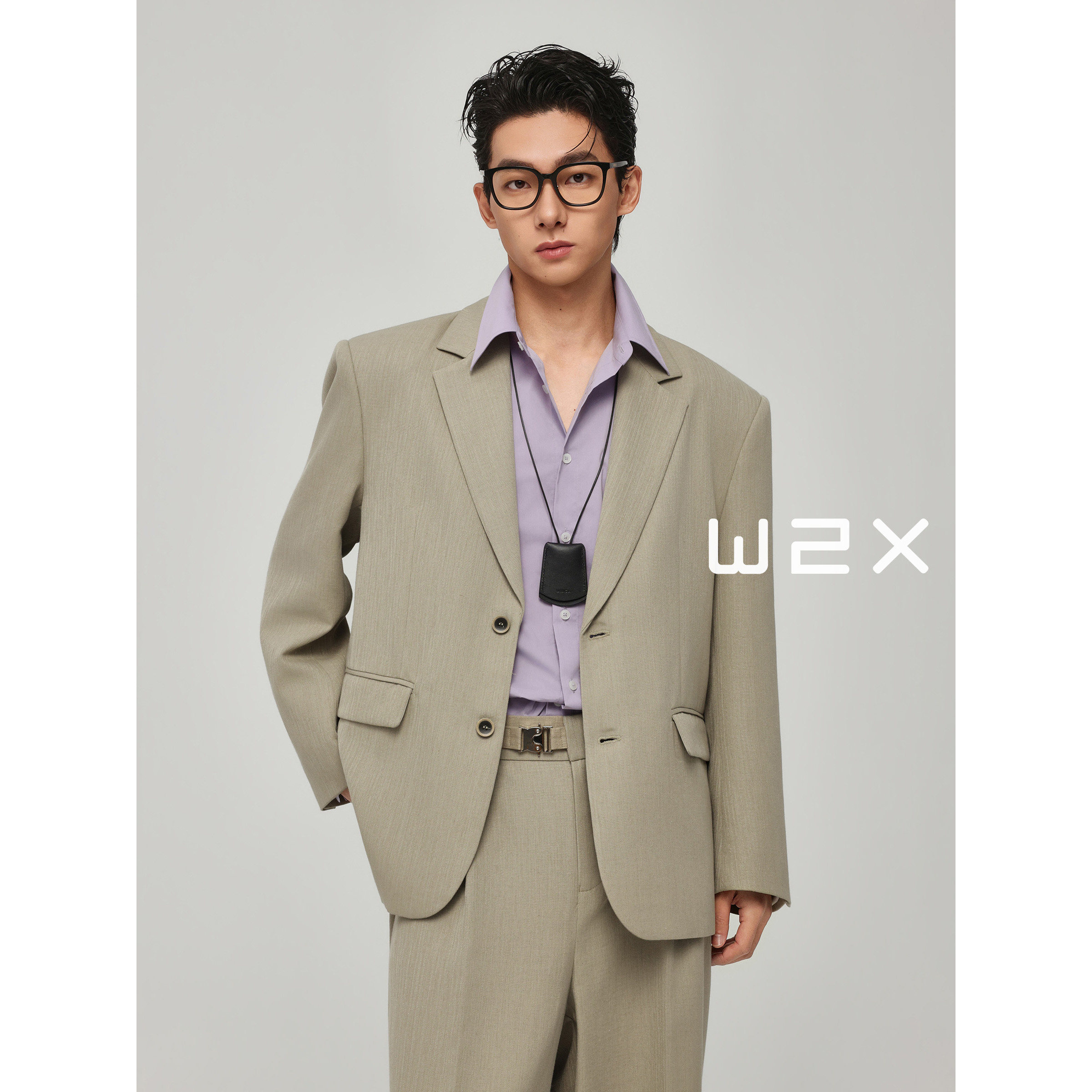 w2x2026春季新款亚麻平驳领休闲西装外套男轻熟风痞帅小西服上衣