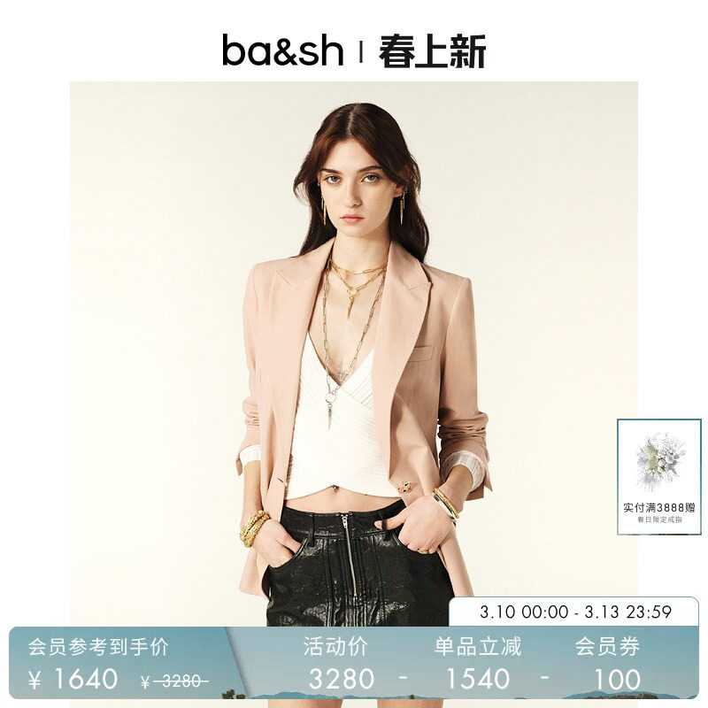 bash春季简约通勤法式亚麻混纺上衣气质女士小西装短外套1E24GAYN