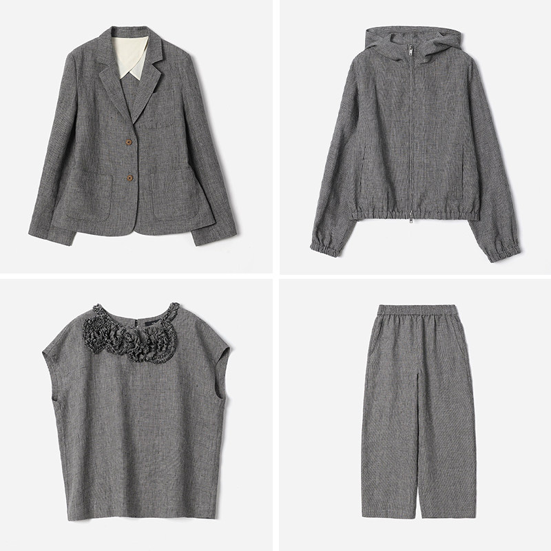 WXZ08022 高智格雷小千鸟格意大利全亚麻西装外套衬衫气球裤女