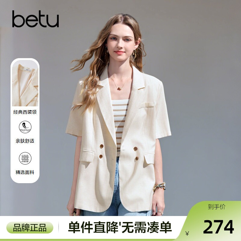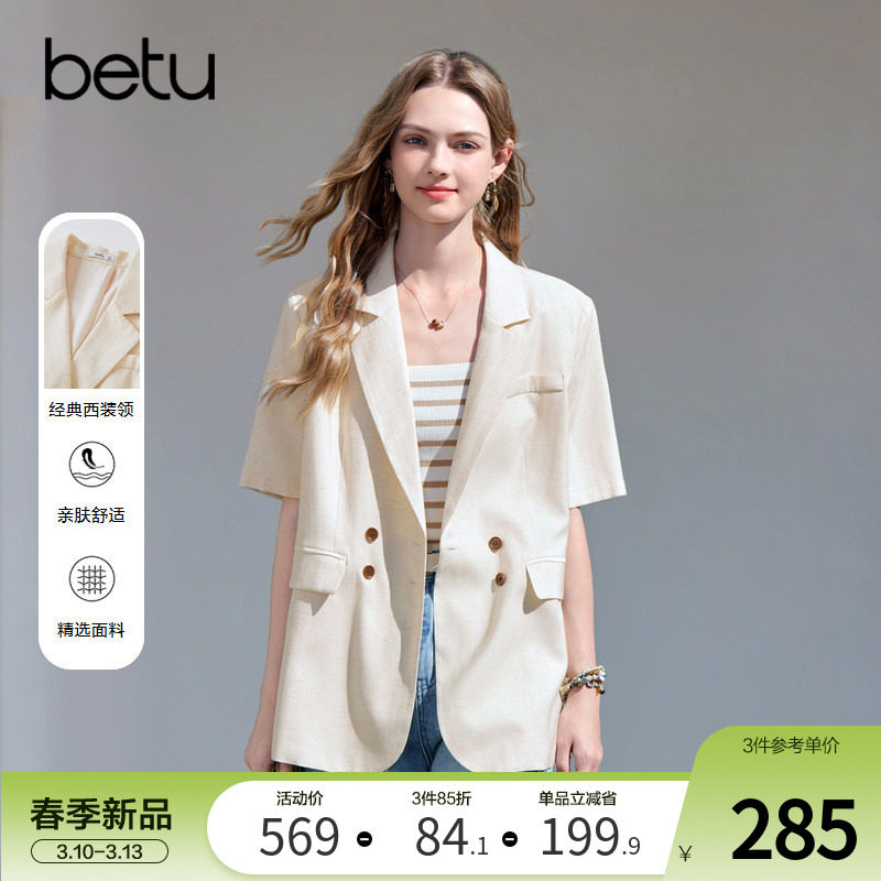 [新品]百图高级感短袖亚麻小西装女2026年夏季新款坠垂感西服外套